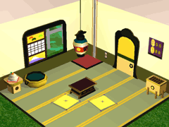 | メタリックなジャパニーズシリーズの家具です。金色の縁が豪華な畳です。金色の羽二重でできた座布団は、ふかふかと座り心地ばつぐんです。これは1階用の敷物です。 |